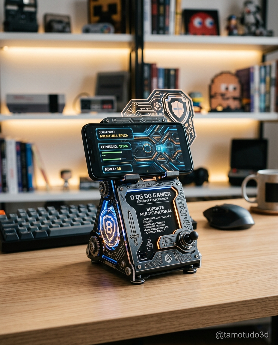 Suportes geek são bastante procurados, especialmente para dispositivos como celulares e fones de ouvido. Embora o custo de filamento seja um pouco maior, o preço de venda pode ser bastante elevado, o que garante uma boa margem de lucro. Comparados com produtos similares vendidos prontos online (que facilmente passam dos R$100), a produção própria é uma alternativa muito mais lucrativa.