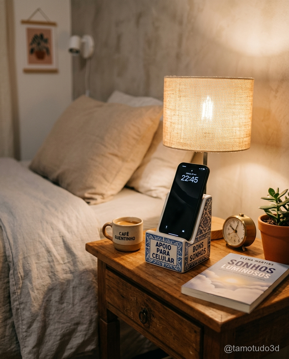 Se você procura um suporte para o celular ao lado da cama, o porta-celular de cabeceira é a escolha certa. Ele é perfeito para quem usa o celular como despertador ou para leitura antes de dormir.