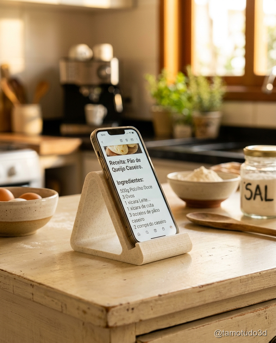 Quem gosta de cozinhar e acompanhar receitas no celular vai adorar o suporte para cozinha com slot para receitas. Ele permite posicionar o celular em ângulo adequado para leitura enquanto prepara o prato.