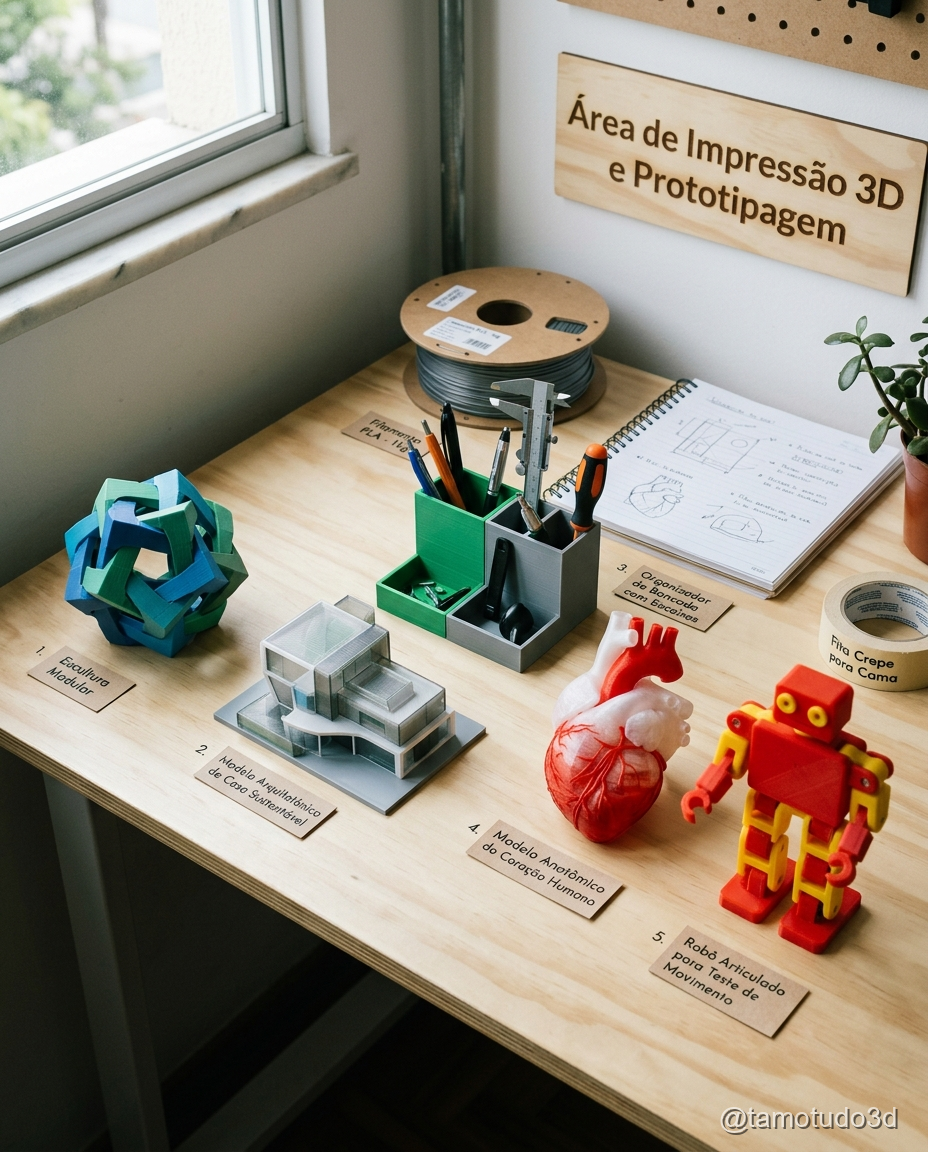 Todos esses modelos foram pesquisados em plataformas como MakerWorld e Printables, garantindo designs acessíveis e fáceis de imprimir.