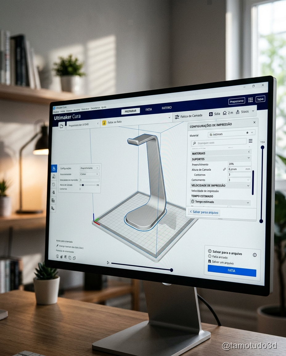 Uma vez escolhido o modelo de suporte que mais atende às suas necessidades, é hora de configurar sua impressora 3D. Se você ainda não está familiarizado com o processo de impressão 3D, o slicer é o programa responsável por transformar o modelo digital em instruções que a impressora segue para criar a peça.