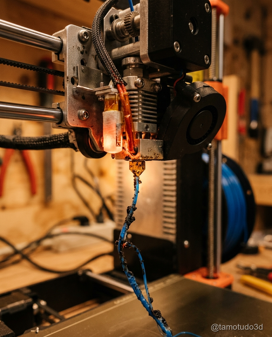 Esse método é eficaz porque o filamento de limpeza age como um "imã", removendo resíduos que poderiam estar obstruindo o bico.
