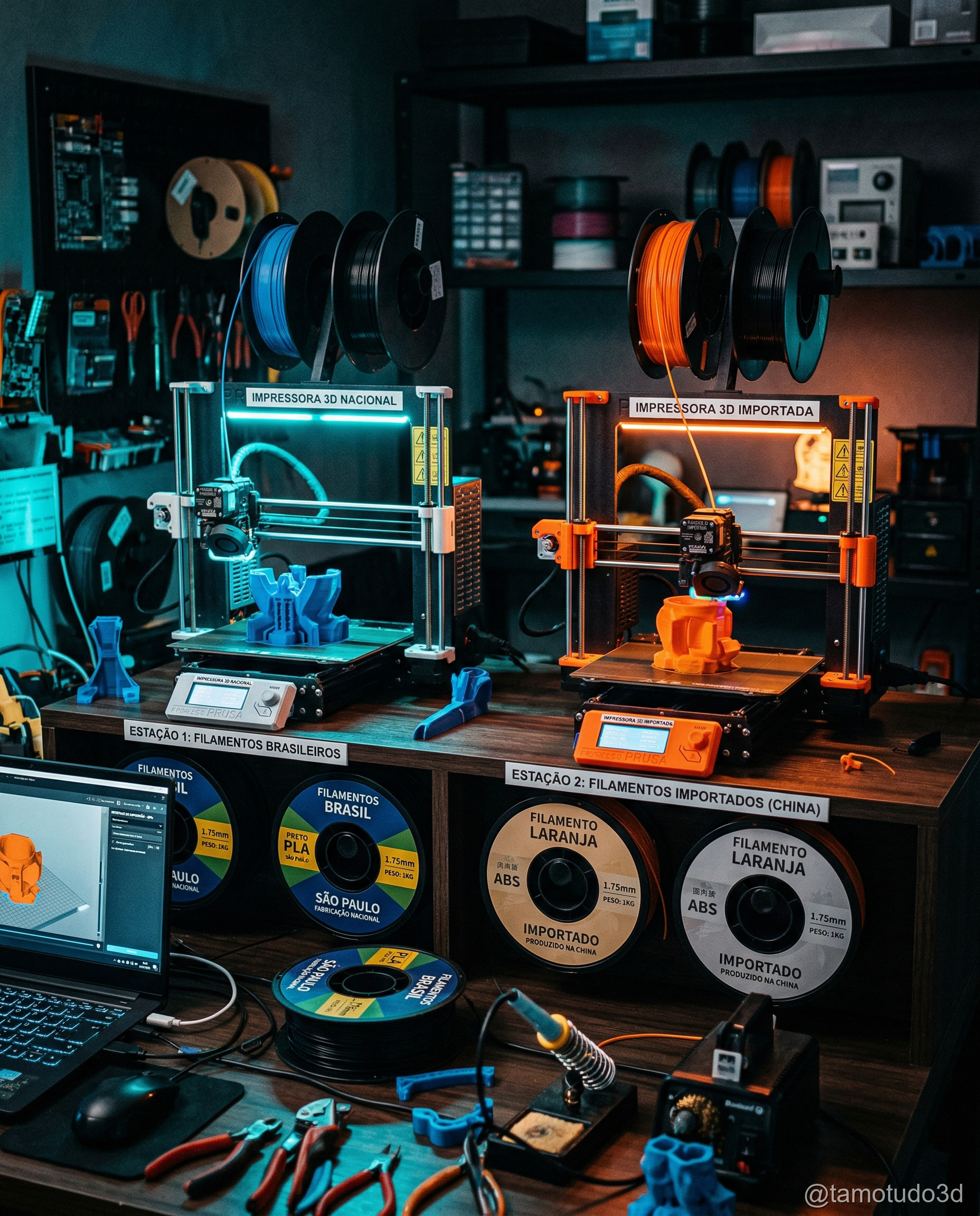 - Cores e acabamento: As cores de filamentos nacionais são mais consistentes; para impressões que dependem da estética, essa é uma vantagem.