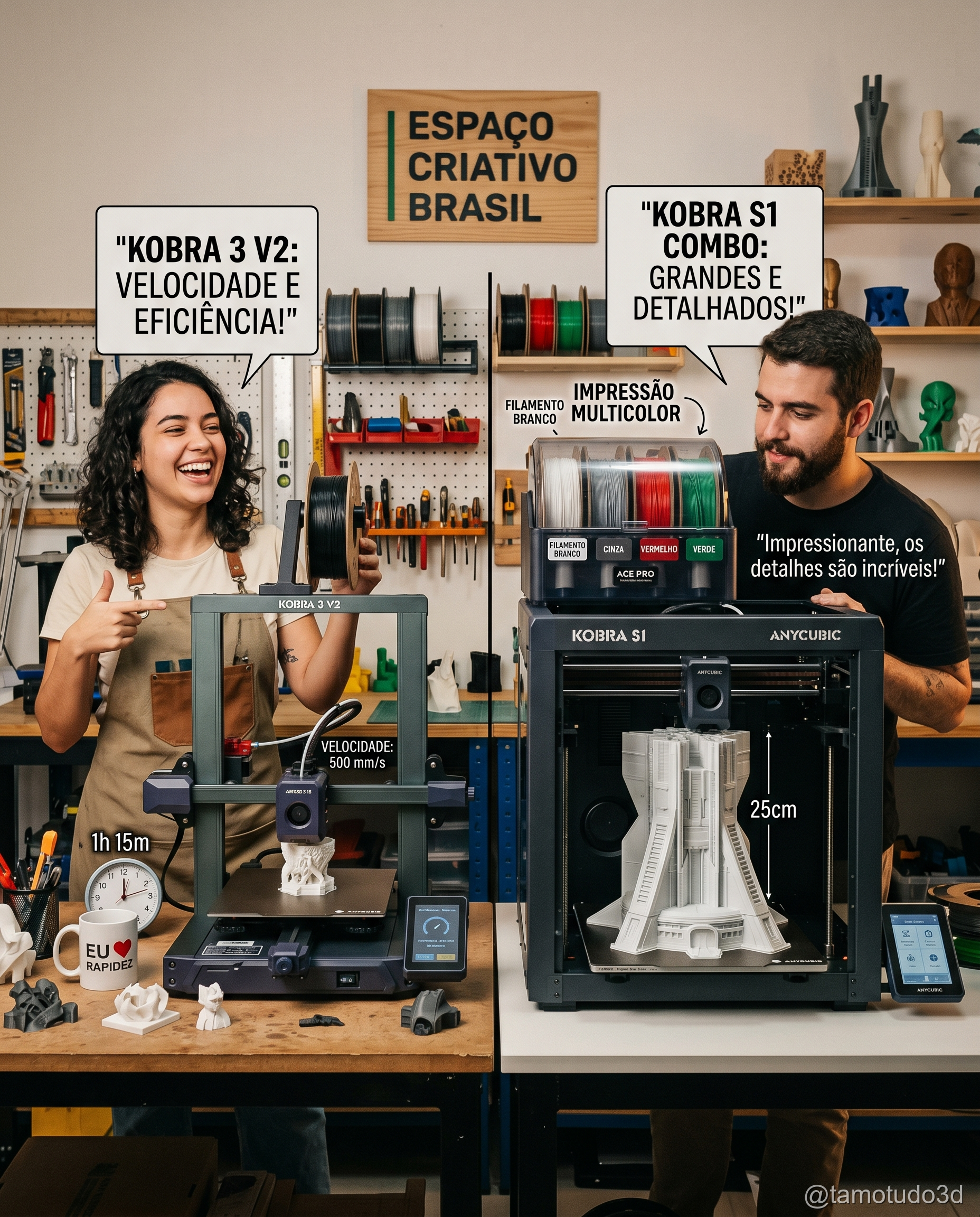Se você está entrando no mundo da impressão 3D ou pensando em atualizar sua impressora, a escolha entre Kobra S1 Combo e Kobra 3 V2 Combo pode gerar dúvidas. Ambas são impressoras 3D de excelente custo-benefício, mas cada uma brilha em diferentes cenários. Neste artigo, vamos analisar a fundo as diferenças práticas, custo-benefício e para quem cada modelo é mais indicado.