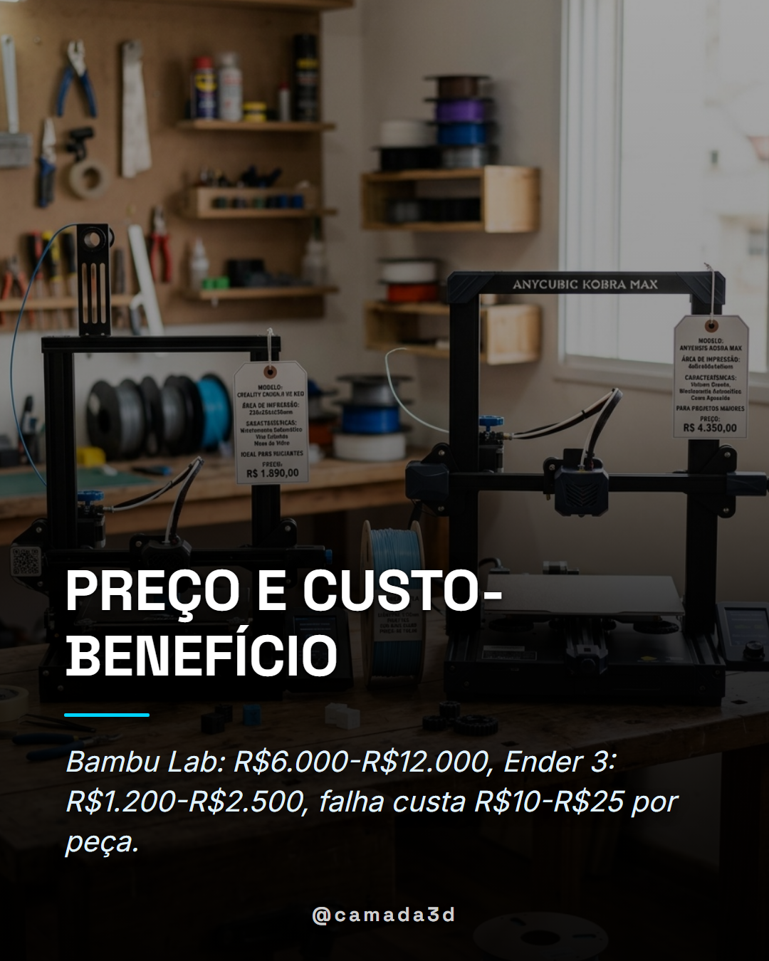 - Impressoras Bambu Lab: R$6.000 a R$12.000