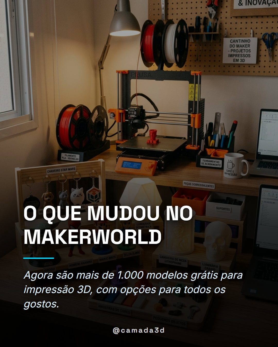 O MakerWorld, plataforma bastante popular entre os makers e entusiastas da impressão 3D, acaba de adicionar uma série de novos perfis gratuitos, expandindo o número de modelos disponíveis. São mais de 1.000 opções grátis para impressão, que variam de itens decorativos, como luminárias e abajures, até estatuetas em tamanho real de personagens icônicos de filmes, quadrinhos e desenhos. Tudo isso está disponível em formato STL, pronto para ser baixado e impresso com sua própria impressora 3D.