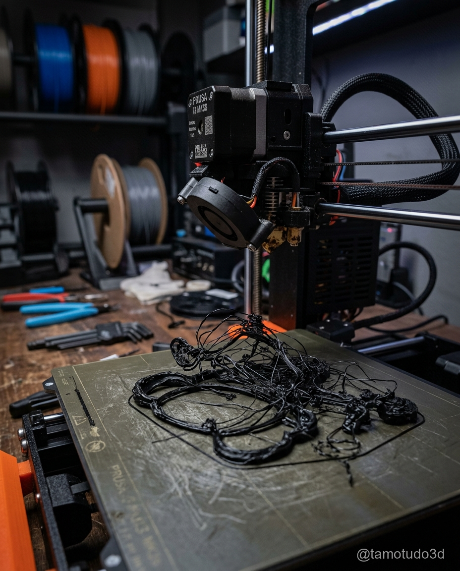 - Falhas de extrusão ou filamento que não adere corretamente.