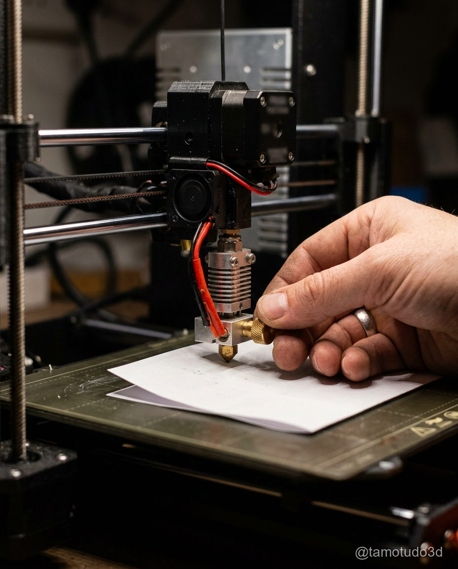 - Por que Funciona: A resistência do papel indica a altura ideal do bico. Ajuste até sentir uma leve resistência ao passar a folha.