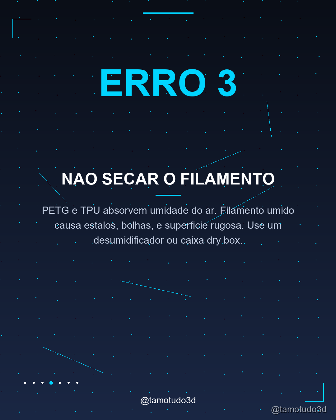 | Filamento umido | Estalos, bolhas, superficie rugosa | Dry box + secador de filamento |
