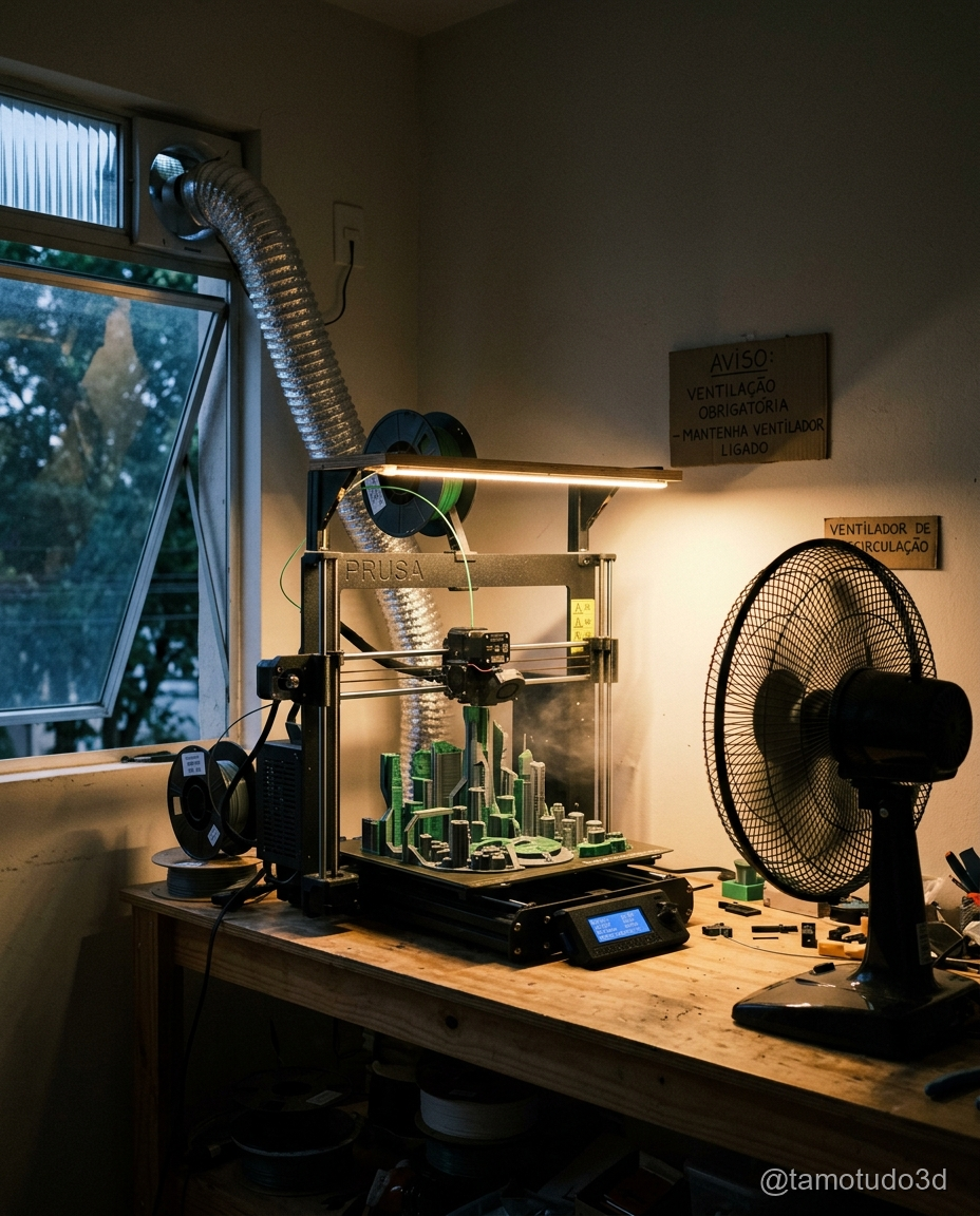 Em dias muito quentes — comuns em várias regiões do Brasil — o ideal é manter o ambiente arejado, mas sem correntes de ar batendo diretamente na impressora. Um espaço com temperatura estável já faz muita diferença na qualidade final da peça.